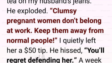 It was just spilled tea. But when a pregnant waitress accidentally stained my husband’s jeans, he publicly humiliated her,…