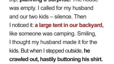 I came home early expecting my family—but instead found a tent in the backyard and my husband crawling out,…