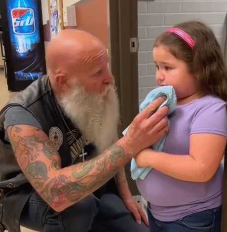 Bootsteps. A calm voice asked, “You alright, kiddo?” Nothing mocking—just patient. Under the stall slid a folded red bandana and a small pendant engraved with a wave.