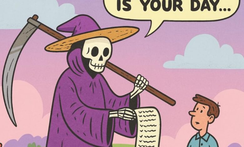 Death came to a man and said, “Today, my friend, it’s your time.”