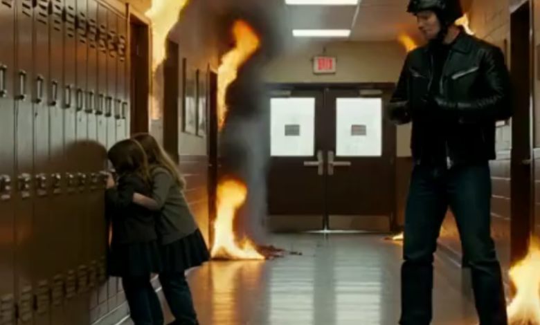 A week later, the fire was ruled arson. Security footage showed the biker outside the classroom before the alarm, slipping something under the door. Overnight, our hero became the prime suspect.
