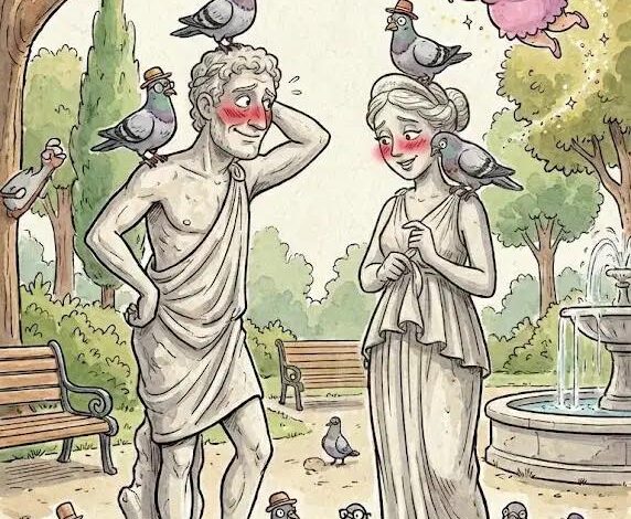 In a quiet city park stood two statues, a man and a woman, gazing at each other for decades.