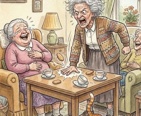Three elderly women sat at a dinner table laughing about aging and memory loss. One admitted she sometimes forgets whether to put groceries away or make a sandwich, while another joked about forgetting if she was going up or down the stairs. The third proudly claimed she had no senior moments—then knocked on the table and mistook it for a knock at the door. A lighthearted joke about getting older, forgetfulness, and aging humor.