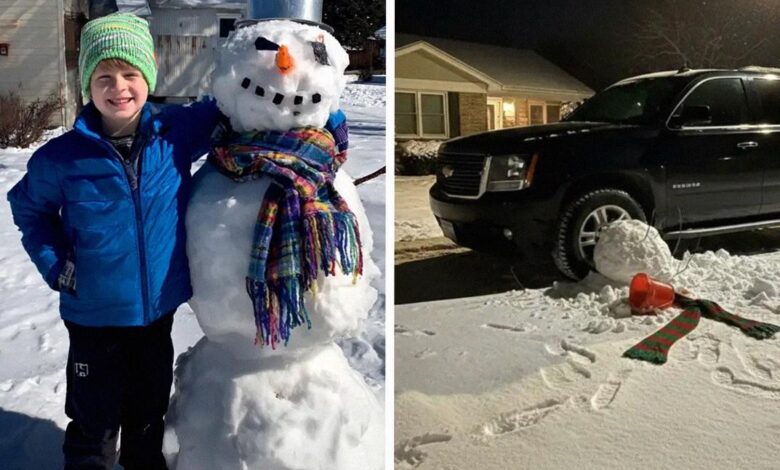 My eight-year-old son spent the winter building snowmen on our lawn, only to watch them get crushed again and again by a neighbor who kept cutting across our yard with his car. After being ignored multiple times, my son came up with his own quiet solution.