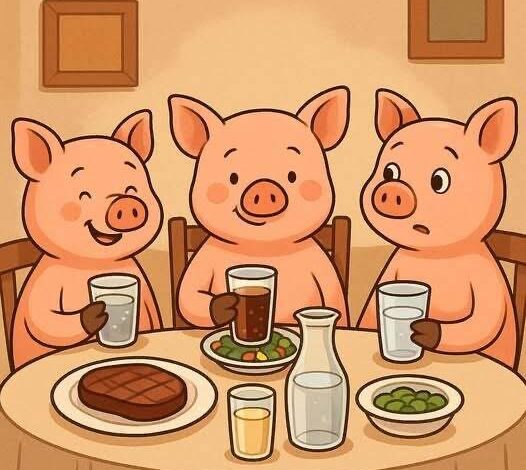 In one twist, the Three Little Pigs dine at a restaurant—two order soda, while the third insists on endless water. The punchline flips a childhood rhyme into literal logic: he drinks so much because he must “wee-wee-wee all the way home.”