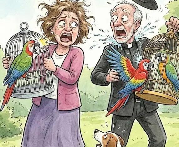The priest said, âThat wonât do at all! But I have two parrots who only pray and read the Bible. Bring yours over, and maybe mine can teach them better manners.â
