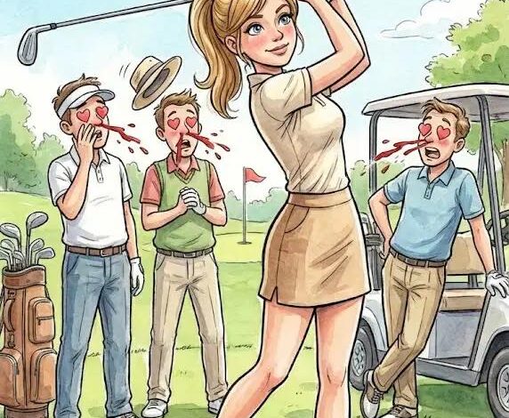 First, the Swede’s wife bent over to tee up—wind lifted her skirt. No underwear!