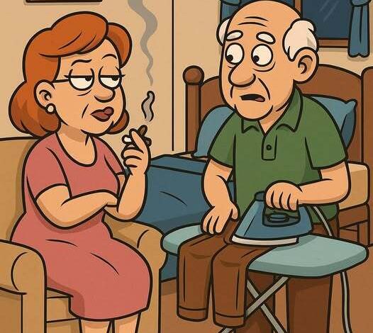 After decades of routine—dinner, news, grumbling, snoring—Edna had had enough. One hot summer night, with the fan rattling and the ironing board awkwardly in the middle of the room, she lit a cigarette and teased: