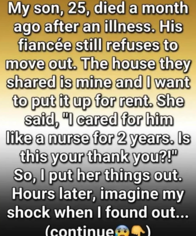 A month after my 25-year-old son died, his fiancée was still living in their home. I told her to leave—grief made his empty room unbearable.
