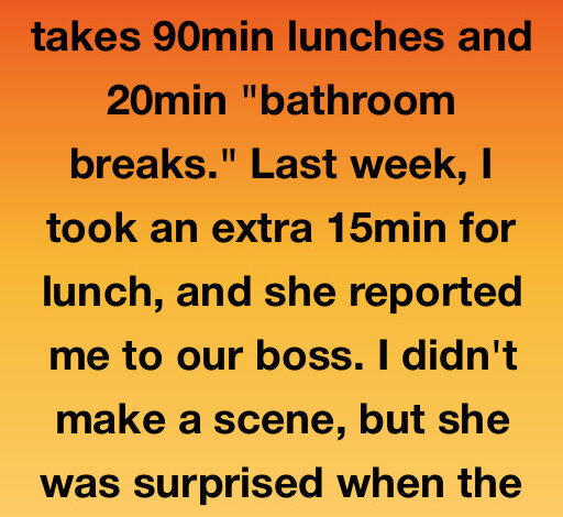 I took an extra 15 minutes for lunch to help my sister. My coworker, Maribel, who regularly takes 90-minute lunches and long “bathroom breaks,” reported me. I expected drama—but instead, it triggered something unexpected.