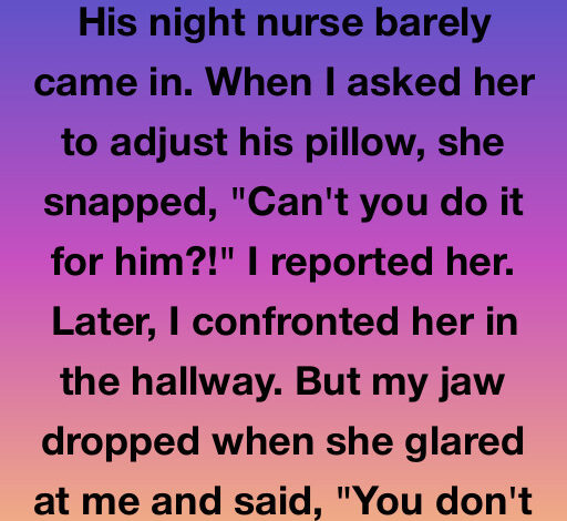 His night nurse was cold and dismissive. When I asked her to adjust his pillow so he could breathe, she snapped, “Can’t you do it?” I reported her, furious.