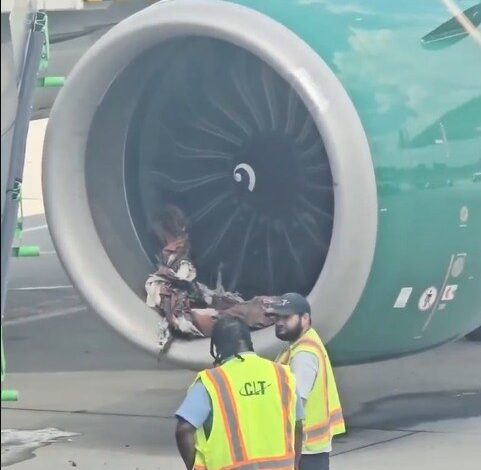 Flight F93134, originally scheduled from Charlotte to LaGuardia, was unable to operate due to the engine damage. Passengers were later moved to a replacement aircraft, which departed about nine hours after the original schedule.