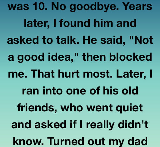 My dad disappeared when I was 10—no goodbye, no explanation. Years later, I found him online and asked to talk. He replied, “Not a good idea,” then blocked me. That hurt more than him leaving.