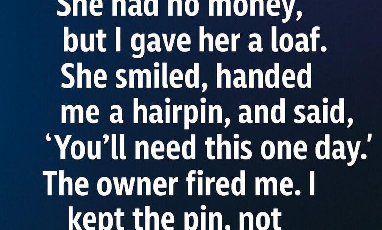 A pregnant woman once came into our bakery begging for bread. She had no money, but something in her eyes made me give her a loaf anyway. She thanked me, handed me a small hairpin, and whispered, “You’ll need this one day.” My boss saw it and fired me on the spot.