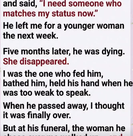 I stayed, cared for him, and held his hand through his weakness, embarrassment, and fear. One quiet evening, he whispered, “I thought she would stay.” I said nothing. Weeks later, he passed away in my arms.