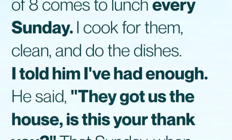 His entire family showed up weekly, and I cooked, served, and cleaned alone while everyone relaxed — including my husband. No one ever offered help. When I finally told him I felt like a servant in my own home, he shrugged and said, “They helped us buy the house. This is your way of saying thank you.”