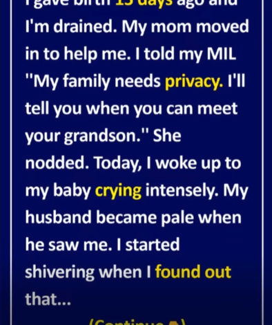 I gave birth just 15 days ago and asked my mother-in-law for one thing: privacy. I told her I’d let her know when I was ready for visitors.