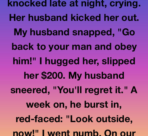 She was crying, soaked, and shaking after being thrown out during a fight with her husband. I didn’t hesitate — I hugged her, gave her $200 from my emergency savings, and helped her leave safely.
