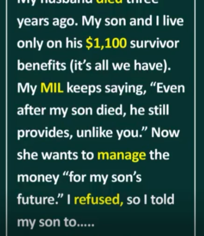 My son and I survive on his $1,100 monthly survivor benefits and small jobs I take to get by. Then my mother-in-law insisted she should control his money because she “knows what’s best.”