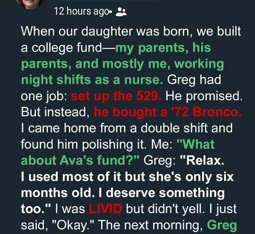 My husband promised to secure our baby’s future… but instead, he spent her entire college fund on a 1972 Ford Bronco.