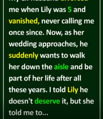 Now, Lily’s wedding is days away. She’s glowing with excitement, and I’m bursting with pride. But out of nowhere… my ex has returned. He wants to walk her down the aisle, to be a father to her again, as if he was never gone.