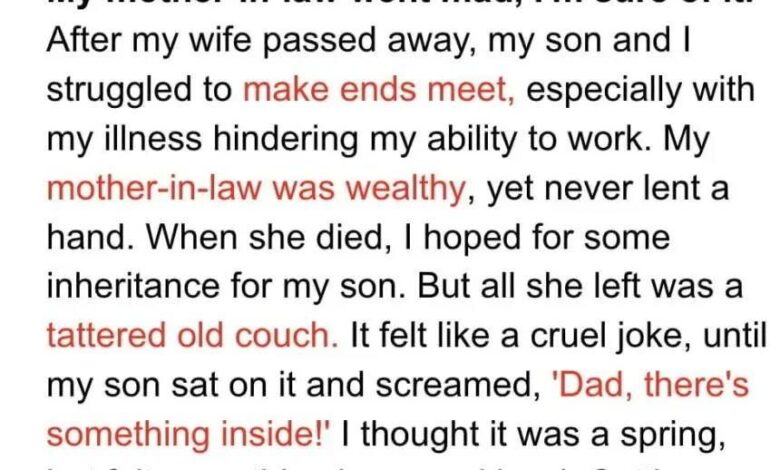 Ten-year-old Kevin inherited a shabby old sofa from his Granny, but he never imagined what it held. Hidden inside was a small box with a letter and legal papers addressed “For Kevin.” As he read, the truth hit him hard: his father, Jerry, cared more about money than his own son.