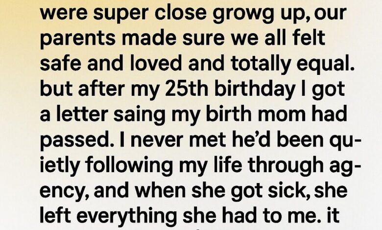 After my 25th birthday, I received a letter that changed everything. My birth mother had passed away. Though we never met, I learned she had quietly followed my life from afar and left everything she had to me as a final act of love.