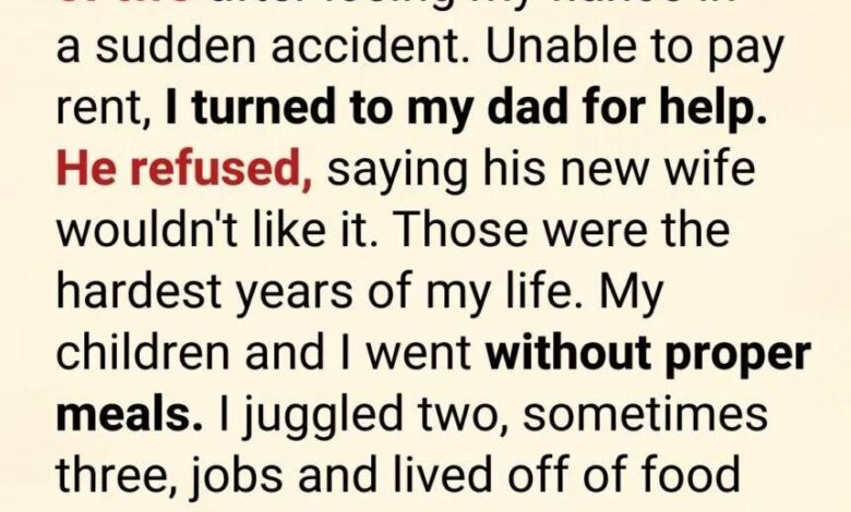 Desperate, I turned to my father for help — believing family would never let us fall. But he refused, saying his new wife didn’t want “disruption” in their home. I drove away in tears, determined to survive for my children.