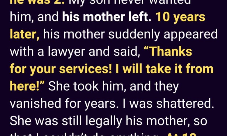 Then one day, his mother returned with a lawyer and took him. I had no legal rights. He cried for me as they drove away… and then—silence for years.