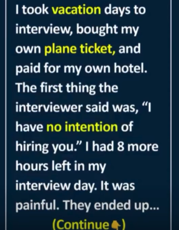 I took time off work, paid for my own flight, and covered my hotel just for a job opportunity I truly wanted. I arrived prepared, hopeful, and ready to prove myself.