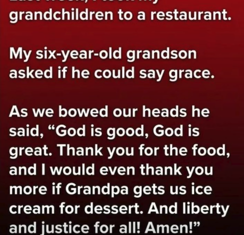 Last week, I took my grandchildren out to dinner when my 6-year-old grandson politely asked to say grace before eating.