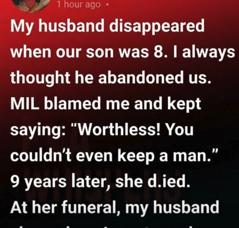 My husband disappeared without a note, goodbye, or explanation—leaving me to raise our 8-year-old son alone while his mother blamed me for his sudden absence. For nine years, I lived with grief, unanswered questions, and the belief that I had been abandoned.