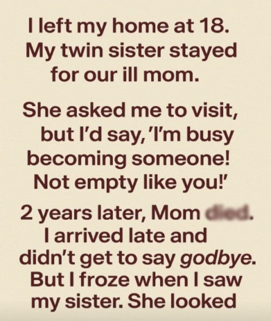 My twin sister chose differently. She stayed behind to care for our sick mother while I chased my dreams in another city. I told myself I was “becoming someone,” while she was simply staying.