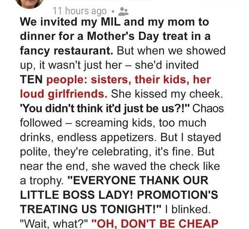 I Took My MIL Out for Mother’s Day – She Turned It into a Family Banquet and Then Handed Me the Check