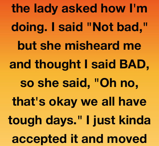 I picked up a pizza when the cashier misheard me say I was “bad” instead of “not bad.” She gently said, “We all have tough days.”