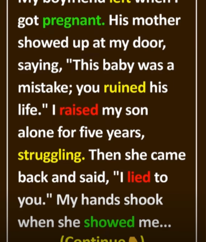 When I was 3 months pregnant, my boyfriend left me. The next day, his mother came to my door and said:
