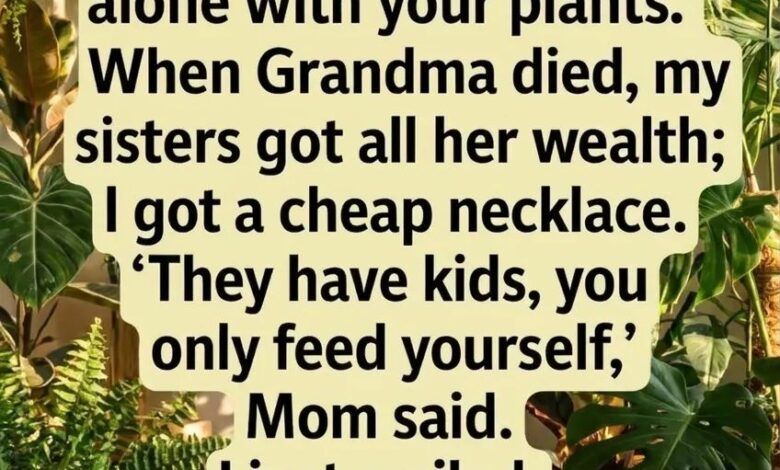 I’m 42 and childfree, and my family always joked I’d “end up alone with my plants.” When my grandmother passed, my sisters inherited everything — and I got a cheap necklace. “They have kids, you only feed yourself,” my mom said.