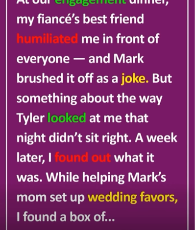At our engagement dinner, my fiancé’s best friend turned his toast into a humiliating roast—mocking my career, my dress, and even suggesting I was with Mark for money. People laughed awkwardly… including Mark, who brushed it off as “just Tyler being Tyler.”