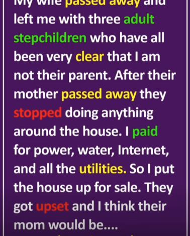 I helped raise my wife’s three children for years, but they always made it clear I wasn’t their parent. After she died, they stopped helping completely—no chores, no bills—while I covered everything.