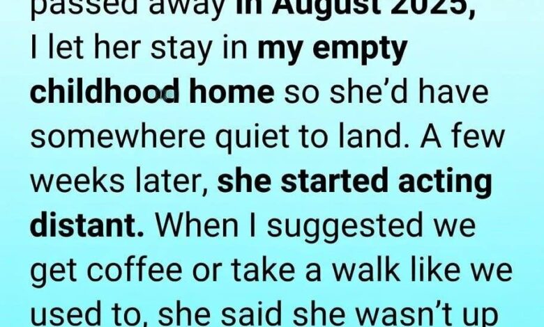 After her mom passed in 2025, I offered her my childhood home—a quiet place where she could grieve and feel safe. At first, it worked. She sent photos, said she was finally sleeping, and I felt like I was helping.