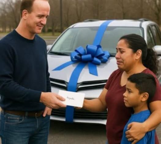 Angela was a single mother juggling two jobs, yet every day—rain or shine—she walked her son Jacob two miles to football practice because they had no car. When a coach once asked why, she simply replied, “Dreams don’t wait for a ride.” Her unwavering commitment caught the eye of Peyton Manning, who surprised her with a minivan and a heartfelt note, calling her the “real MVP.” The gift was life-changing: Angela could work better hours, get more rest, and drive Jacob to football clinics.