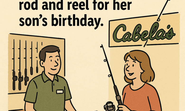 A woman walks into Cabela’s to buy a fishing rod and reel