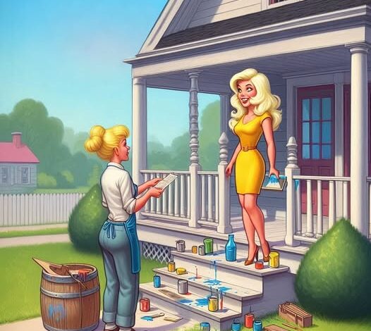 A little later, the blonde knocks and proudly says, “All done! And I even gave it two coats.” The man starts pulling out the cash, then she grins and adds, “By the way, it’s not a porch… it’s a Lexus.”