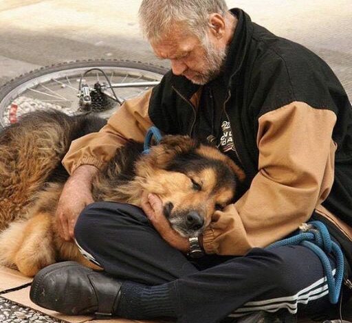 I wasn’t planning to stop that day—already late with work calls buzzing and messages piling up. But near the pharmacy, I saw them again: a man and his dog, a constant presence on that block. The man’s worn jacket couldn’t hide his thin wrists; the dog, calm and patient, rested quietly in his lap.