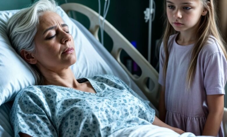 The wife, nearing the end of her life, received a visit in her hospital room from a young girl who asked her to become her mother.