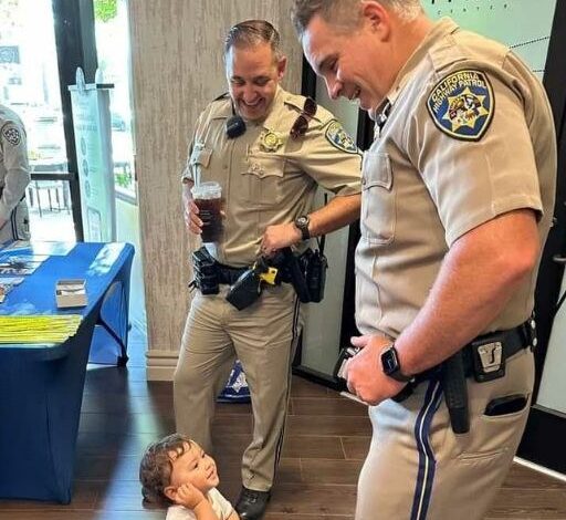 We only planned to stop at the bank for five minutes. I told my energetic son to stay close while I used the ATM. But when I looked back, he was already chatting like old friends with two California Highway Patrol officers nearby.