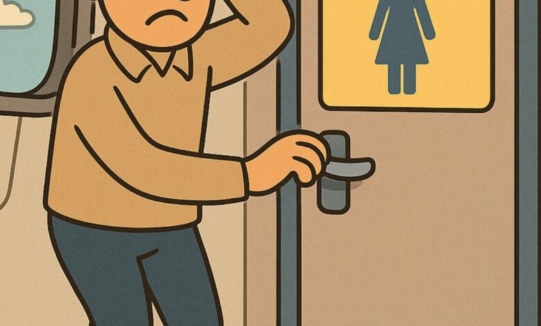 A man asked to use the women’s restroom on a flight. The attendant agreed but warned him not to press any buttons inside.