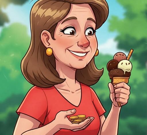 The clerk handed her the ice cream cone and change. She left the shop, clutching her change—but no ice cream cone. Confused, she returned inside, expecting to find it left behind somewhere, but it was nowhere to be seen.