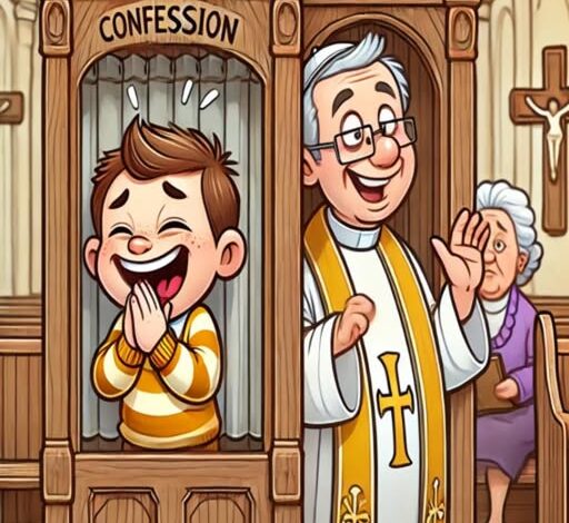 Nervous but curious, Tommy stepped into the booth and began listing his “sins”—stealing a pencil, saying a bad word, lying to his mom… and then things got creative. He admitted to tossing his sister’s Barbie out the window and smearing toothpaste on Grandpa’s dentures while he slept.