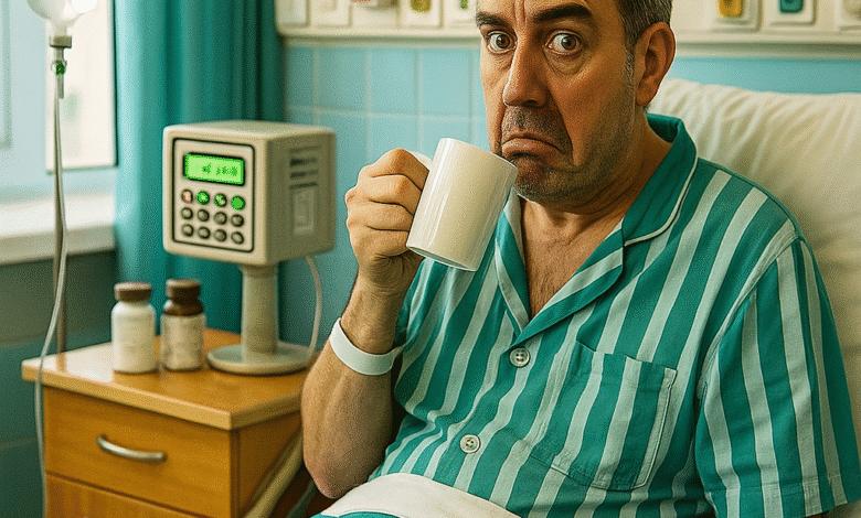 A shy man in the hospital had a test that messed up his digestion. After ignoring several false alarms to use the bathroom, he had an accident in bed. Panicking, he grabbed the soiled sheets and tossed them out the window to hide the evidence.